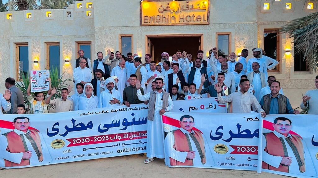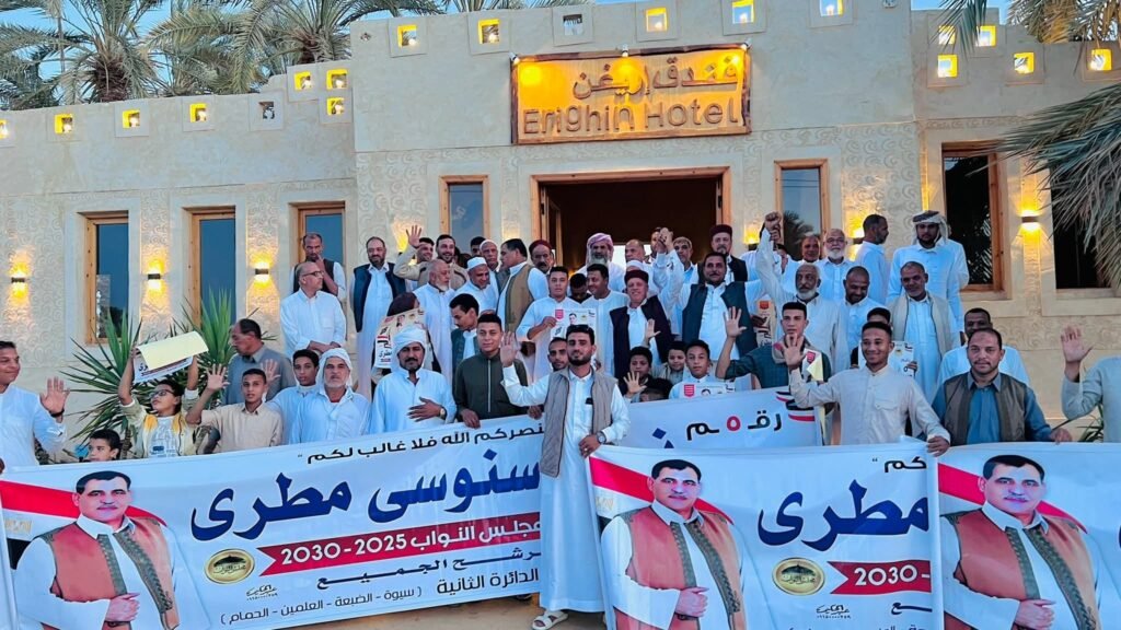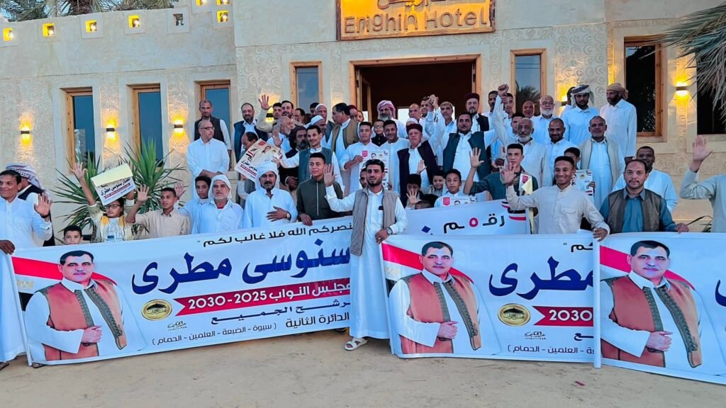 حيث تم استقبال المرشح نصار سنوسي مطري استقبالًا يليق بمكانته وألقى كلمة عبّر فيها عن تقديره لأهالي سيوة ووعد بالعمل الجاد لتحقيق ما يصب في مصلحة الأهالي وخدمة الوطن.