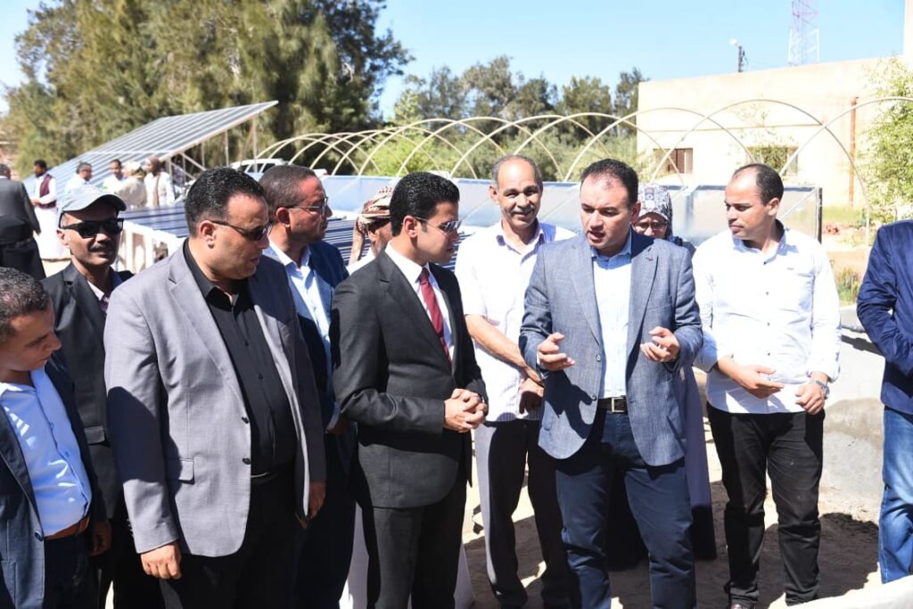 وعقب إنتهاء فعاليات الورشة، تم تفقد وحدات التحلية الشمسية الذكية المقامة ضمن المشروع، والتي تعتمد على الطاقة النظيفة في تشغيل نظم التحلية والإدارة الذكية للمياه. كما تم استعراض نموذج تطبيقي لإستدامة الصوب الزراعية المعتمدة على هذه الوحدات، بما يحقق كفاءة عالية في ترشيد استهلاك المياه والطاقة، ويعزز تطبيقات الزراعة الذكية في البيئات الصحراوية.