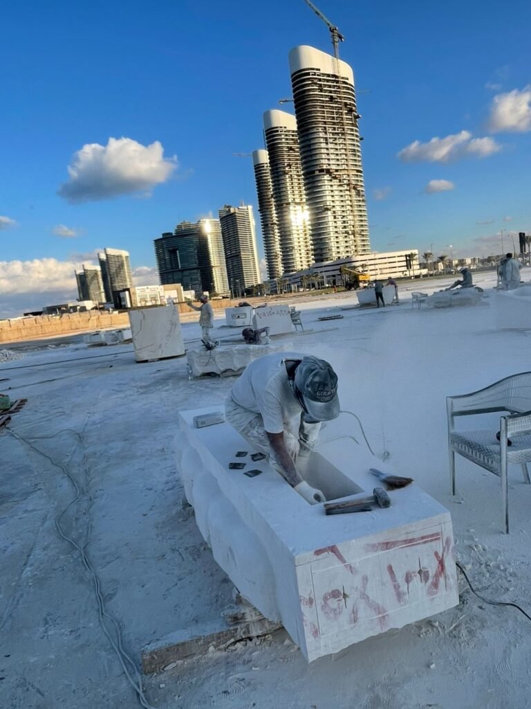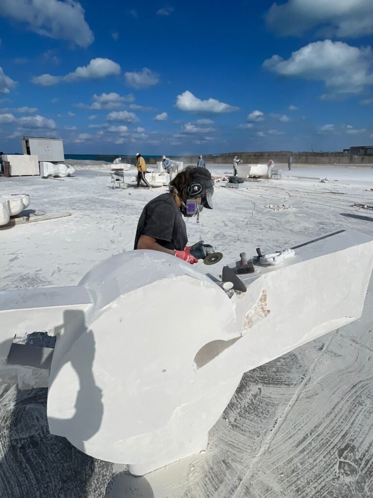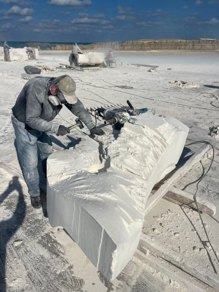 برعاية المهندس شريف الشربيني وزير الإسكان والمرافق والمجتمعات العمرانية الجديدة ووسط أجواء فنية مفعمة بالإبداع يواصل الفنانون المشاركون في سمبوزيوم مصر الدولي للنحت بمدينة العلمين الجديدة أعمالهم في نحت مجسمات فنية مبهرة تزين ميادين وشوارع المدينة وتحولها إلى متحف مفتوح يخلّد جمال الفن في قلب واحدة من أجمل مدن البحر المتوسط.