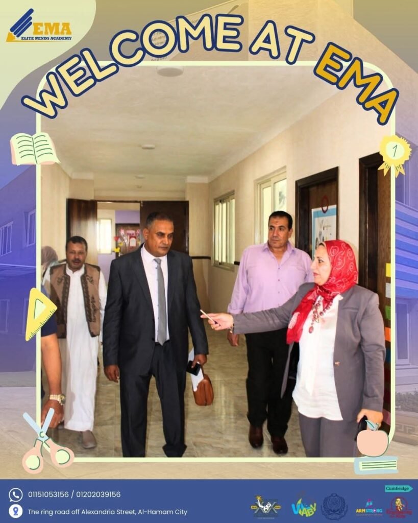 في إطار المتابعة الرسمية لاستعدادات المدارس للعام الدراسي الجديد بادارة الحمام التعليمية استقبلت مدرسة إيليت مايندز للغات صقر محمد عبدالرحيم ضيف الله وكيل إدارة الحمام التعليمية.