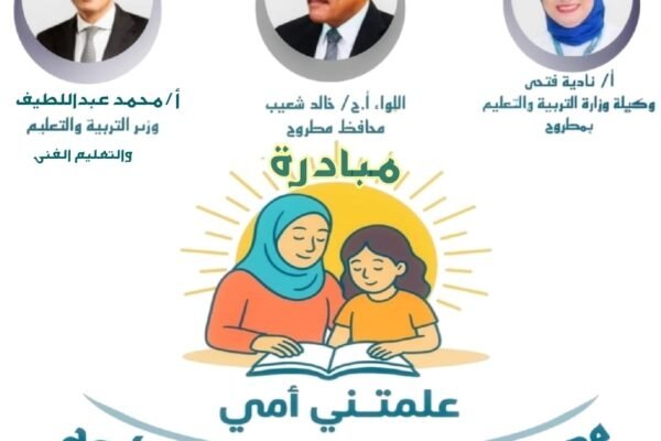 كتب محمد السيد اعلنت  نادية فتحي وكيل وزارة التربية والتعليم بمحافظة مطروح أن المديرية أطلقت مبادرة ( علمتني أمي) وبداية تنفيذها الأسبوع المقبل وتشمل ورش عمل لأمهات الطلاب الضعاف في القراءة والكتابة كذلك الذين يتغيبون عن الحضور للمدارس وذلك تحت اشراف توجيه عام اللغة العربية وادارة التعليم الابتدائي والأقسام التابعة له بالادارات التعليمية بالتعاون مع…